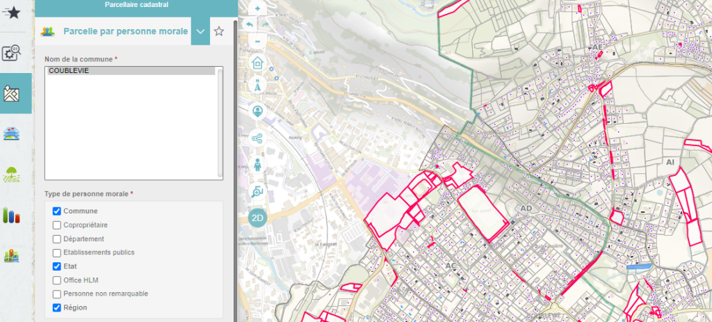 Une cartographie recensant les parcelles des personnes morales est accessible dans les applications du portail !