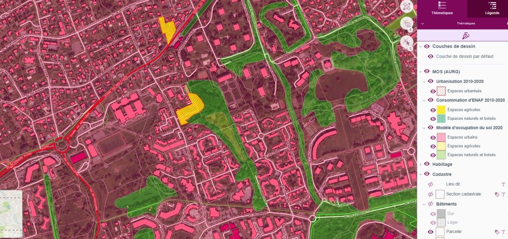 Les couches SIG du MOS 2020 permettent des analyses par tache de consommation en croisant vos propres données avec ces informations géolocalisées. Ces informations sont regroupées selon 3 catégories « espaces urbanisés » / « espaces agricoles » / « espaces naturels et boisés ». Une couche de consommation affinée des ENAF montrant l’évolution de la consommation d’ENAF 2010 – 2020